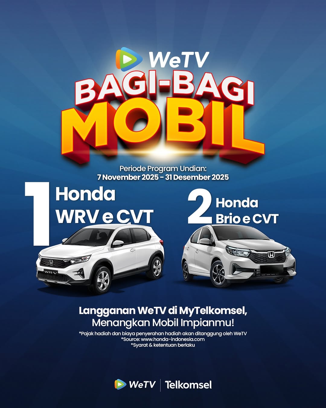 LayarHijau.com – Menjelang pergantian tahun, WeTV bekerja sama dengan Telkomsel meluncurkan sebuah program spesial yang menawarkan kejutan besar bagi para pelanggan setia di seluruh Indonesia. Melalui kolaborasi ini, pelanggan Telkomsel berkesempatan membawa pulang hadiah utama berupa mobil Honda hanya dengan mengaktifkan paket WeTV VIP.