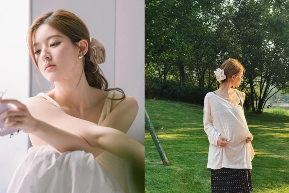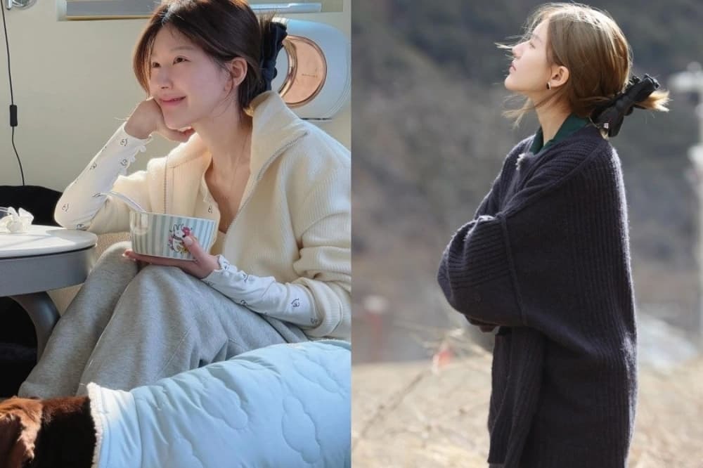 Jepit besar memang praktis, tetapi mudah terlihat “berat” jika dipasang terlalu kencang. Teknik Zhao Lusi adalah memasang dengan sentuhan longgar agar rambut tidak terlihat tegang. Ujung rambut ia lipat ke dalam membentuk U, menghasilkan gaya santai yang hangat dan lembut.