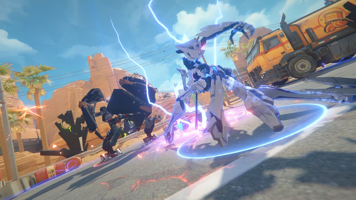 Sementara itu, Aria, vokalis utama Angels of Delusion, adalah agen Ether Anomaly dengan dua bentuk berbeda: bentuk konstruksi dan proyeksi idol. Ia mengandalkan charged attack untuk menghasilkan burst damage tinggi, terutama terhadap musuh yang terkena Attribute Anomaly, dan dikenal efektif dalam pertarungan jarak dekat. Mendukung mereka dari balik layar adalah Bangboo Biggest Fan, presiden fan club setia yang mampu memulihkan HP secara bertahap dan bahkan meningkatkan Attack tim jika terdapat setidaknya dua anggota Angels of Delusion dalam satu skuad. Sunna dan Aria juga akan mendapatkan kostum baru, dengan kostum Aria menonjol berkat desain dual-form yang unik. Selain itu, agen S-Rank Yixuan (Auric Ink – Rupture) dan Yuzuha (Physical – Support) dipastikan kembali melalui rerun banner di versi ini.