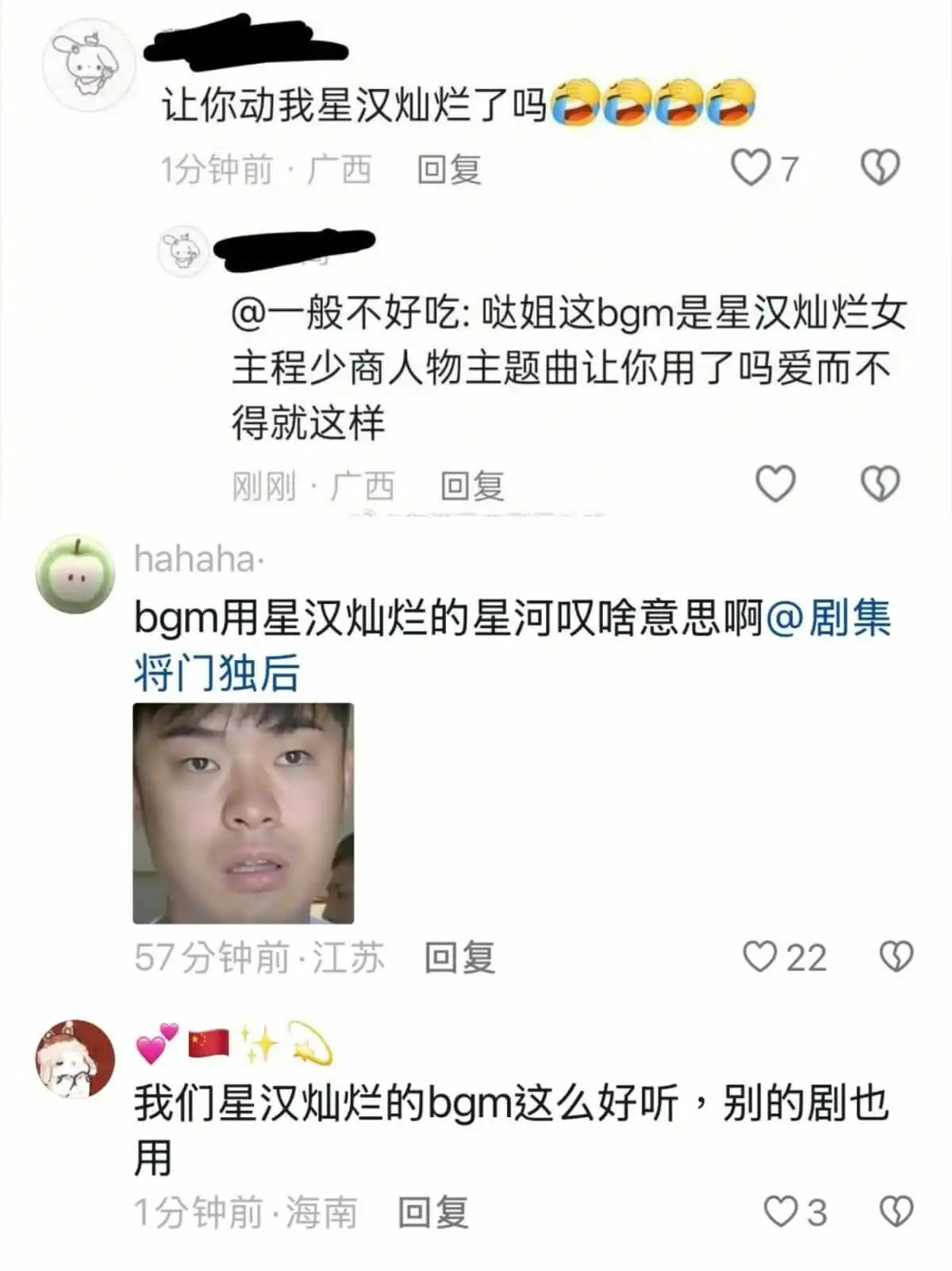 Selain itu, penggemar drama Love Like The Galaxy turut menyoroti penggunaan musik latar karakter Cheng Shaoshang dalam video perkenalan karakter Meng Ziyi. Karena lagu tersebut sangat identik dengan karakter yang diperankan Zhao Lusi, sebagian warganet menilai langkah tersebut menunjukkan kurangnya orisinalitas dari tim produksi.
