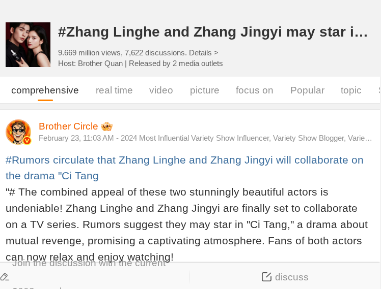 Kini, rumor yang beredar menyebutkan bahwa harapan tersebut berpotensi menjadi kenyataan lewat drama kostum Ci Tang. Proyek ini disebut-sebut akan digarap oleh sutradara Yi Jun, yang sebelumnya bekerja sama dengan Zhang Linghe dalam drama era Republik berjudul Overdo.